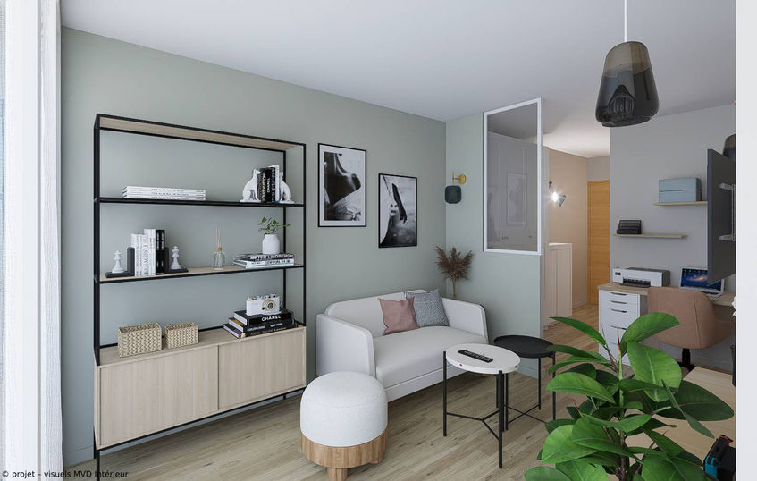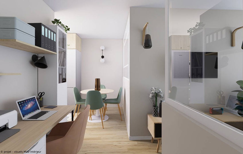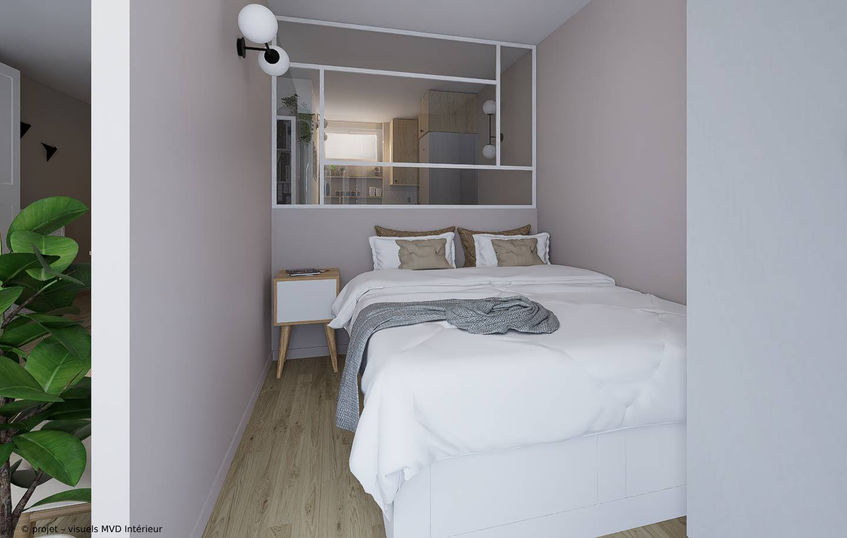Aménager plusieurs zones dans ce studio lyonnais contribue à instaurer une ambiance à la fois chaleureuse et réconfortante. La lumière naturelle arrivant par la grande baie vitrée ainsi qu’une petite fenêtre dans la cuisine, installer des verrières nous permet de laisser circuler la lumière dans cet appartement. La lumière naturelle arrivant par la grande baie vitrée ainsi qu’une petite fenêtre dans la cuisine, installer des verrières nous permet de laisser circuler la lumière dans cet appartement.
